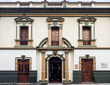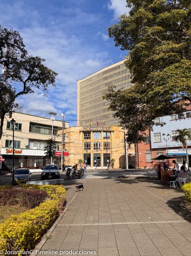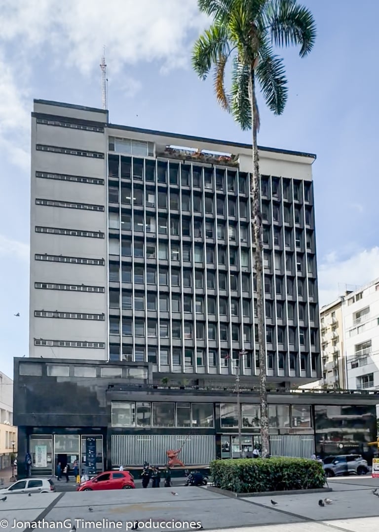 El Edificio del Banco de la Republica fue construido en la época que prosiguió a la demolición de la antigua sede del Colegio San Simón en el año 1.957.