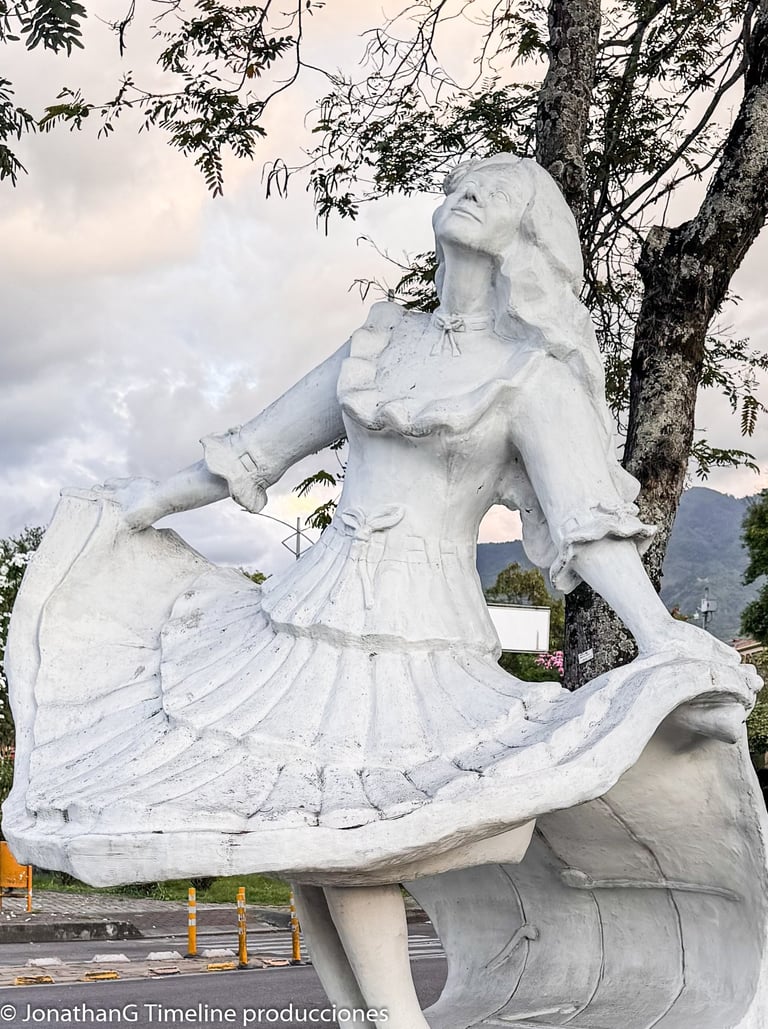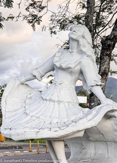 La obra fue creada en 1993 por la escultora ibaguereña María Victoria Bonilla, se encuentra en la glorieta de la calle 80 y simboliza la danza del bambuco.