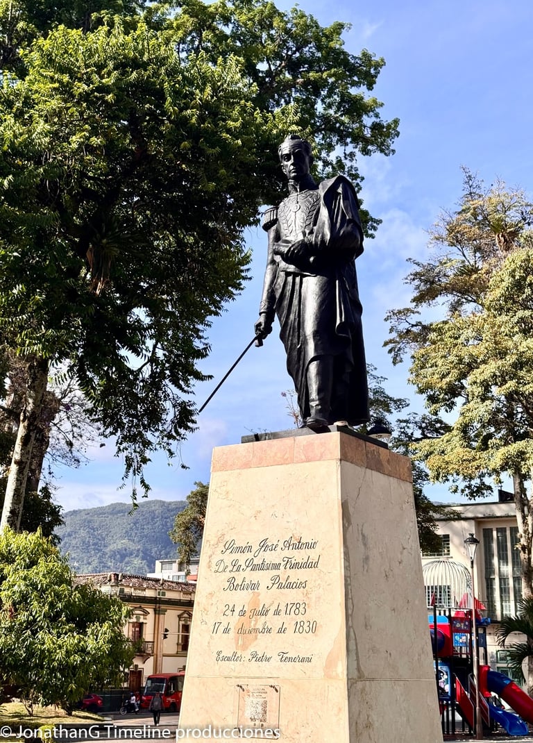 Ubicado en la mitad de la Plaza de Bolívar entre las carreras segunda y tercera; con calles novena y décima, el monumento Simón José Antonio de la Santísima Trinidad Bolívar destaca por su estilo neoclásico, bajo la referencia de la estatua de nuestro libertador ubicada en la Plaza de Bolívar de la ciudad de Bogotá. Fue declarada Bien de Interés Cultural en el año 2.000
