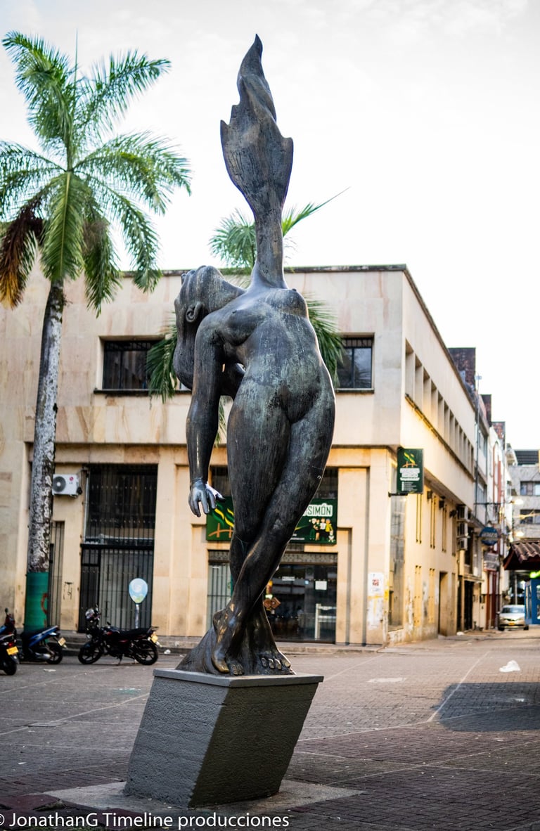 El Boga nos lleva a una remembranza de los indígenas pescadores, que remaban o bogaban las aguas del rio grande de la magdalena. Esta escultura engalana la fachada del edificio del Banco de la República como parte de una fuente artificial.